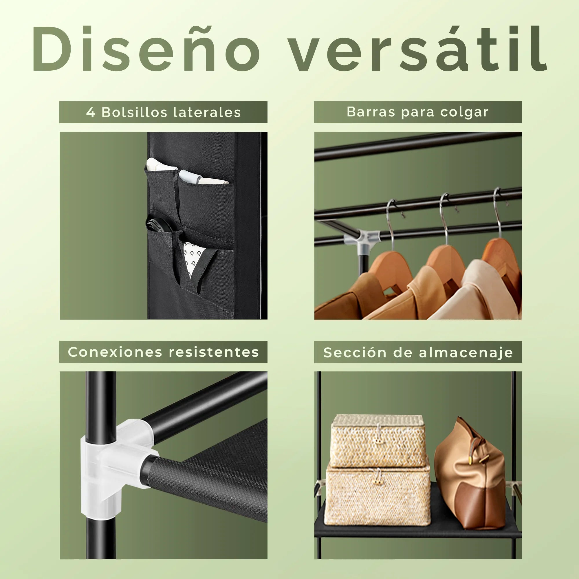 Pasa del desorden al orden en minutos. Con nuestro armario portátil, cada prenda, zapato y accesorio tiene su lugar. Vive la comodidad, el estilo y la organización que tu habitación necesitaba.